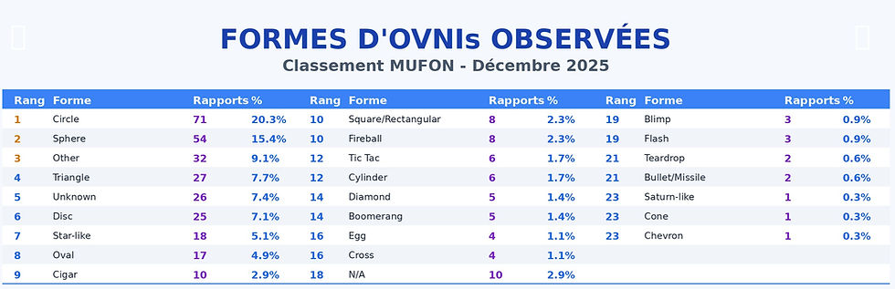 Le mois de décembre 2025 marque une transition nette dans le rythme des observations d’OVNI à l’échelle mondiale. Avec 390 signalements enregistrés dans le Case Management System (CMS) du MUFON, l’activité OVNI reste soutenue tout en reflétant un ralentissement saisonnier attendu en fin d’année.